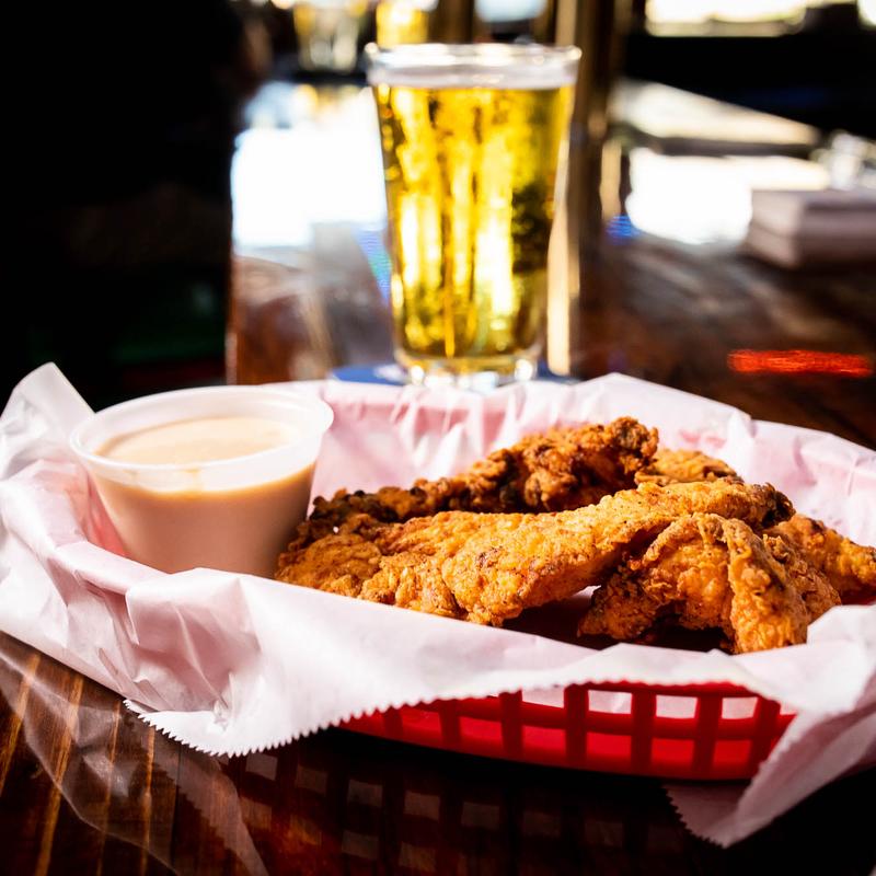 Excellent chicken fingers. Very generous portion. Nice and juicy each chicken finger about half a chicken breast wide There were 12 of us and one cook but still all meals came out in a timely manner. Everybody ordered something different and all enjoyed their food...